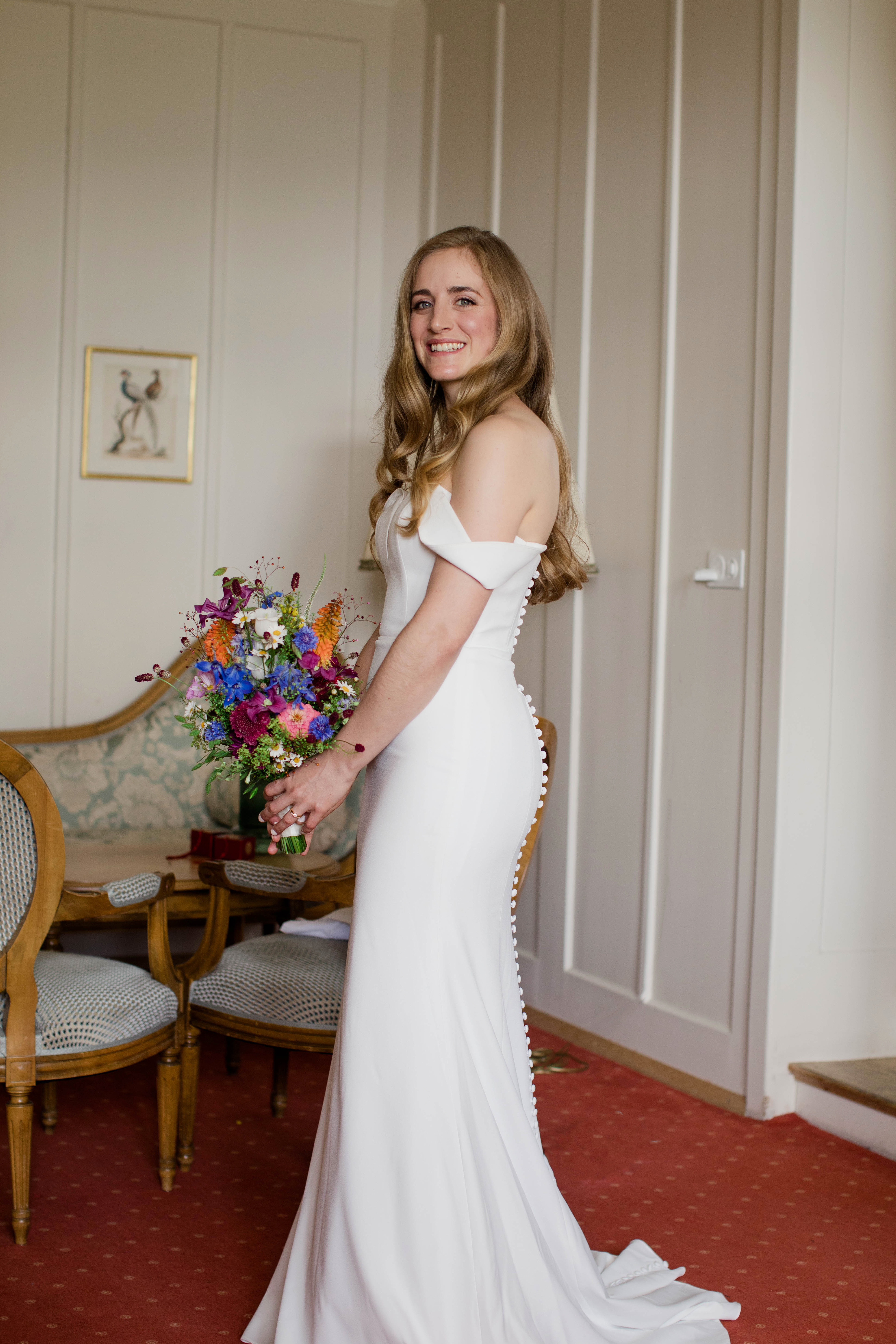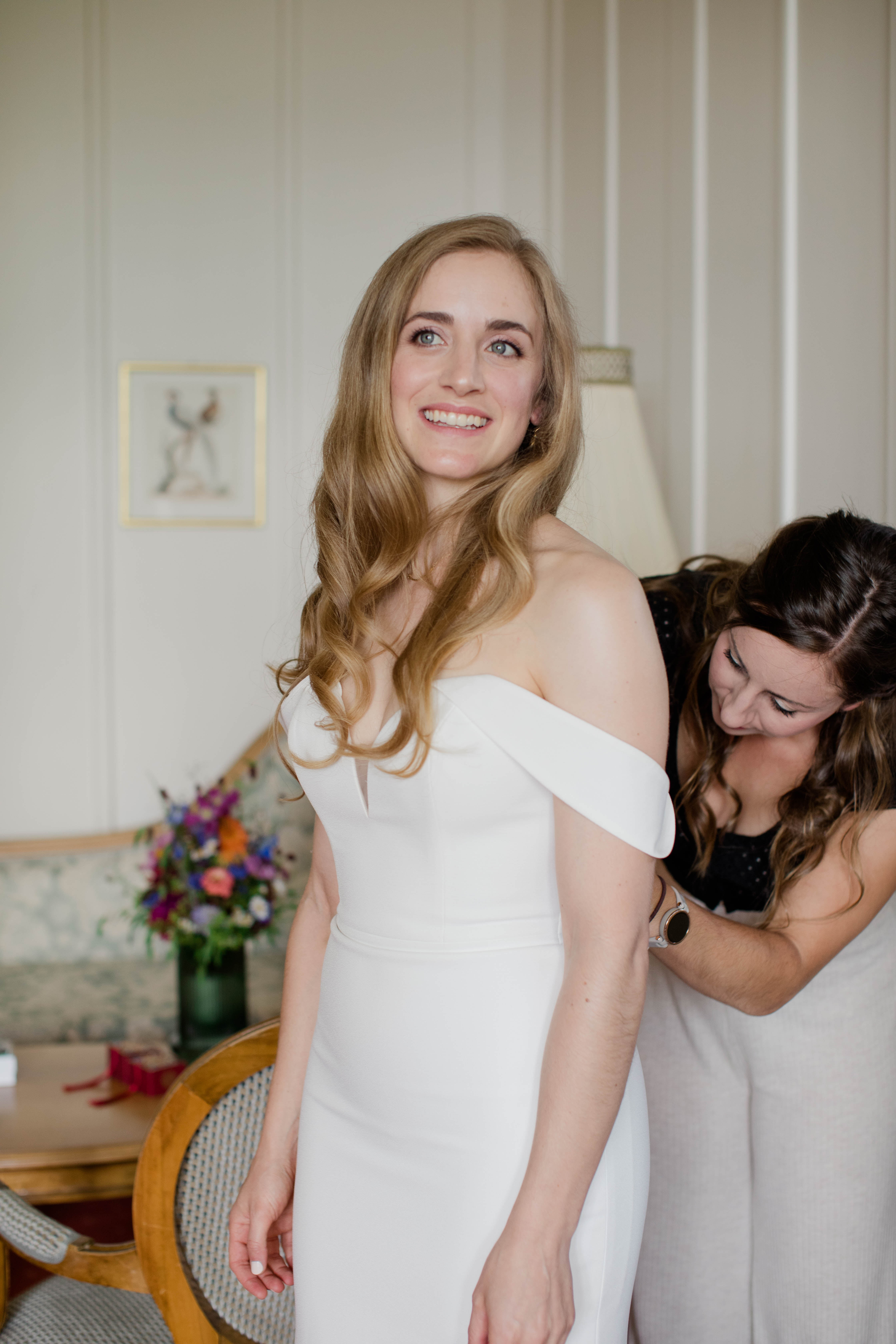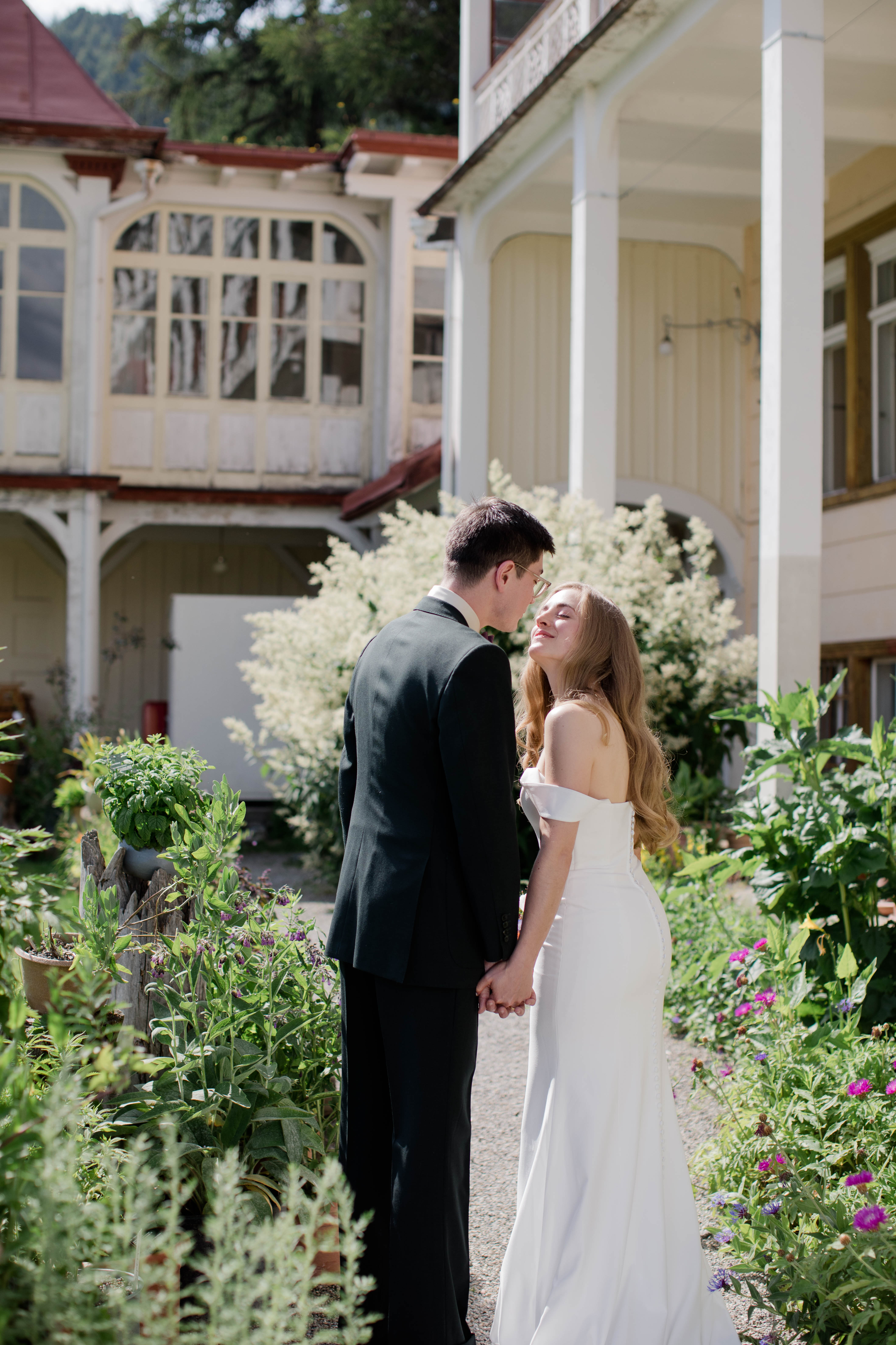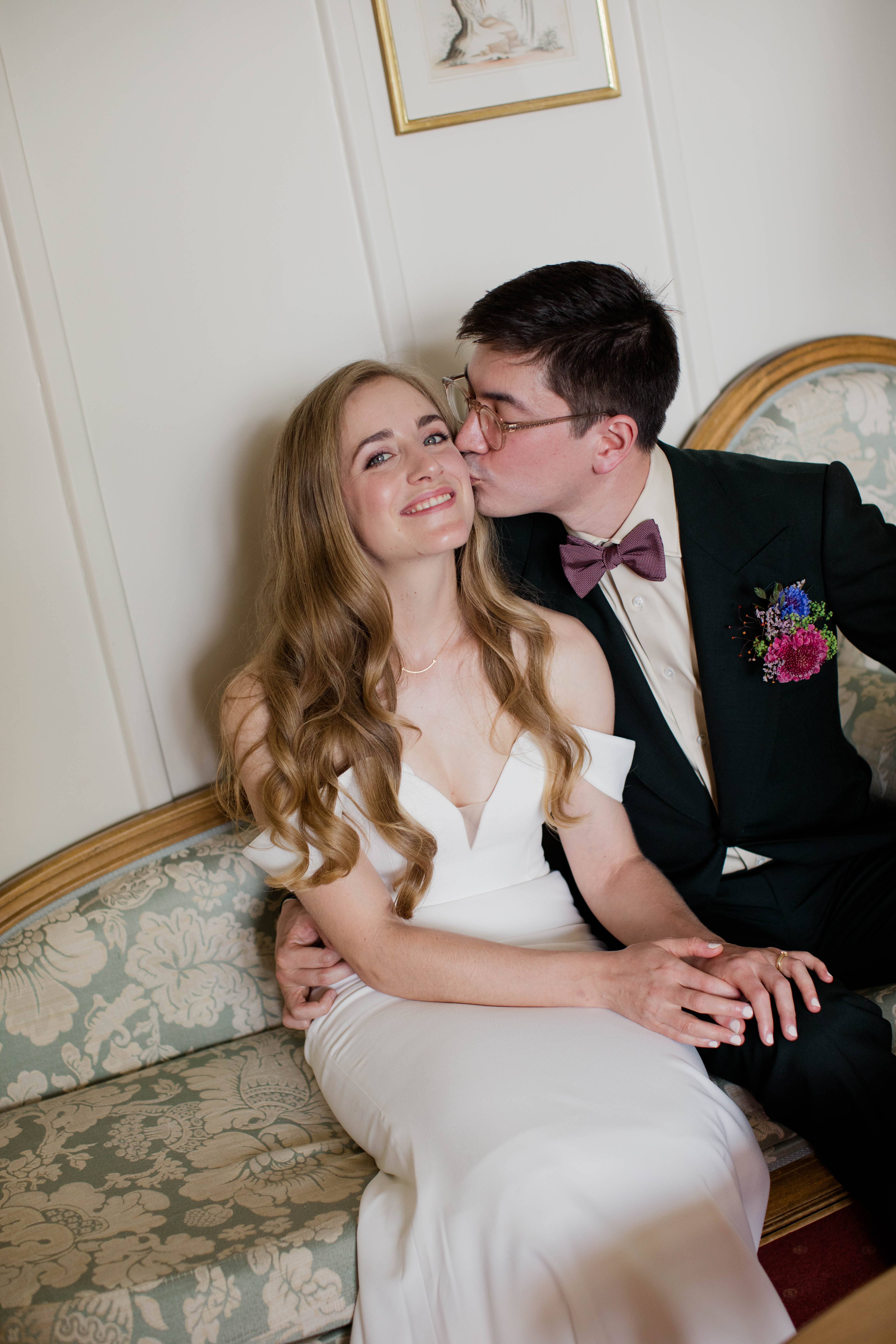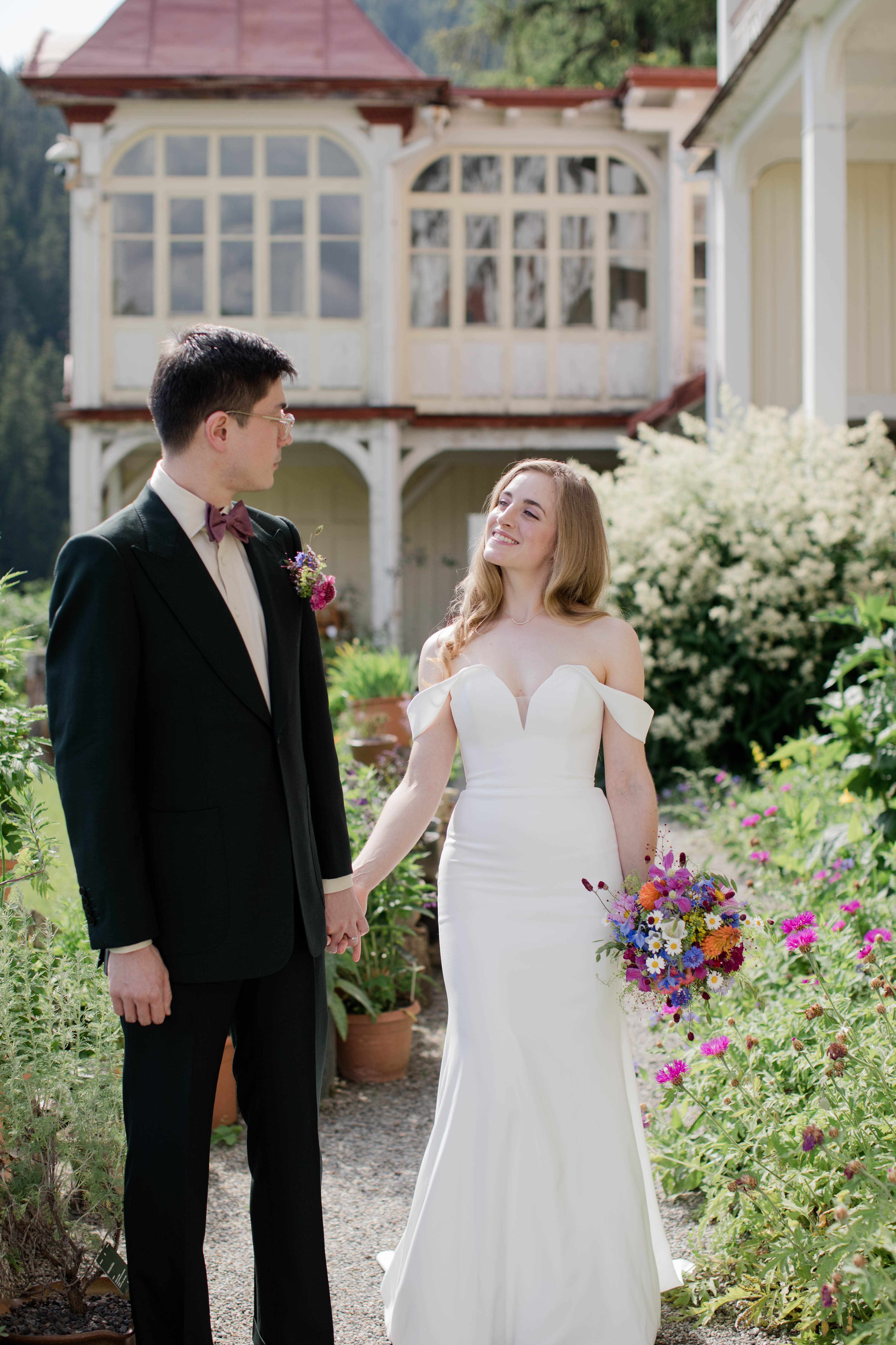 The couple captured stunning portraits in the hotel’s picturesque garden, with the majestic Alps providing a breathtaking backdrop. Inside, the hotel itself was a testament to the bride’s aesthetic, every corner reflecting the vintage symmetry and whimsical charm of an Anderson film. It was a truly magical experience, as if we were living inside a work of art.