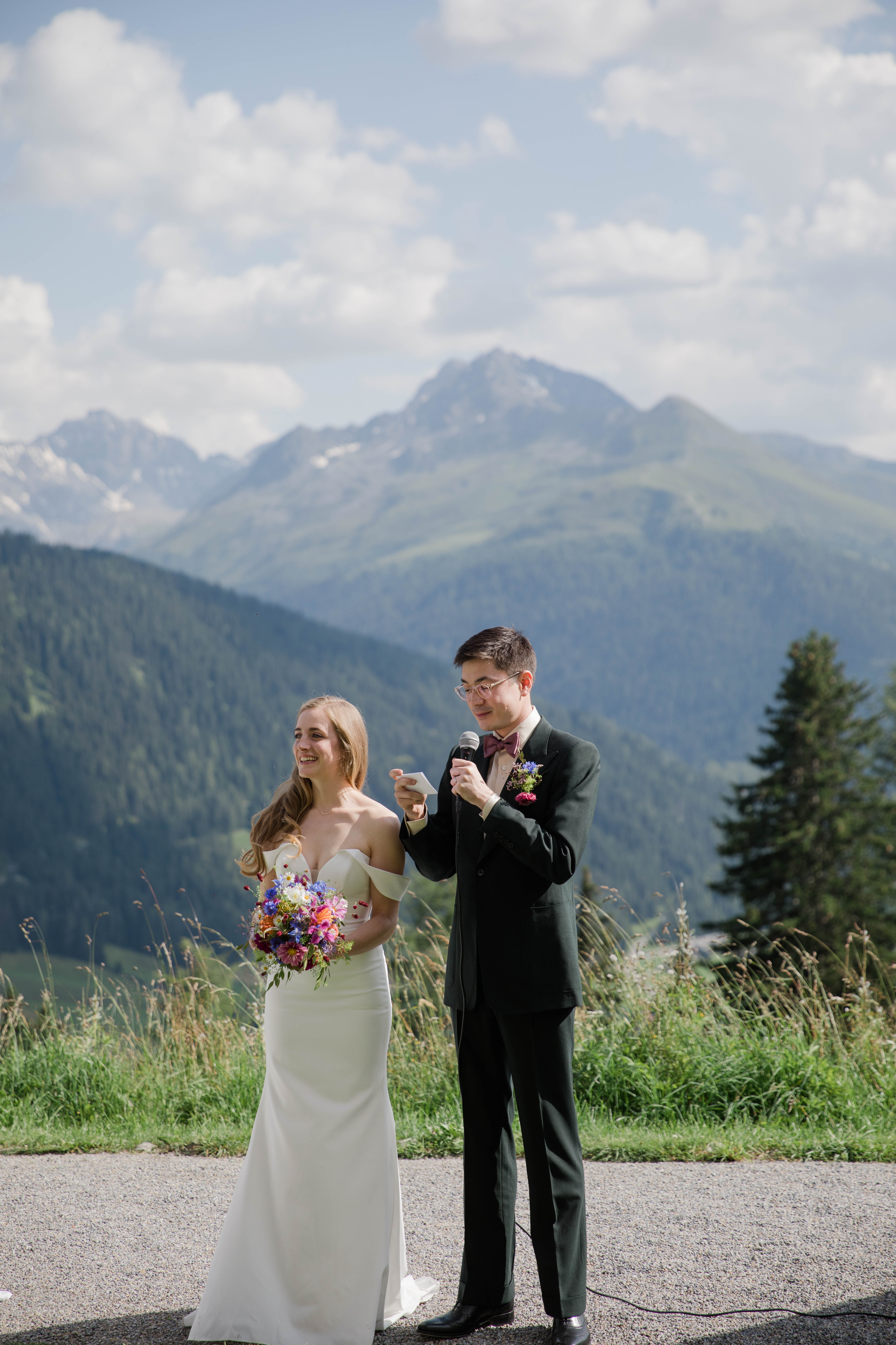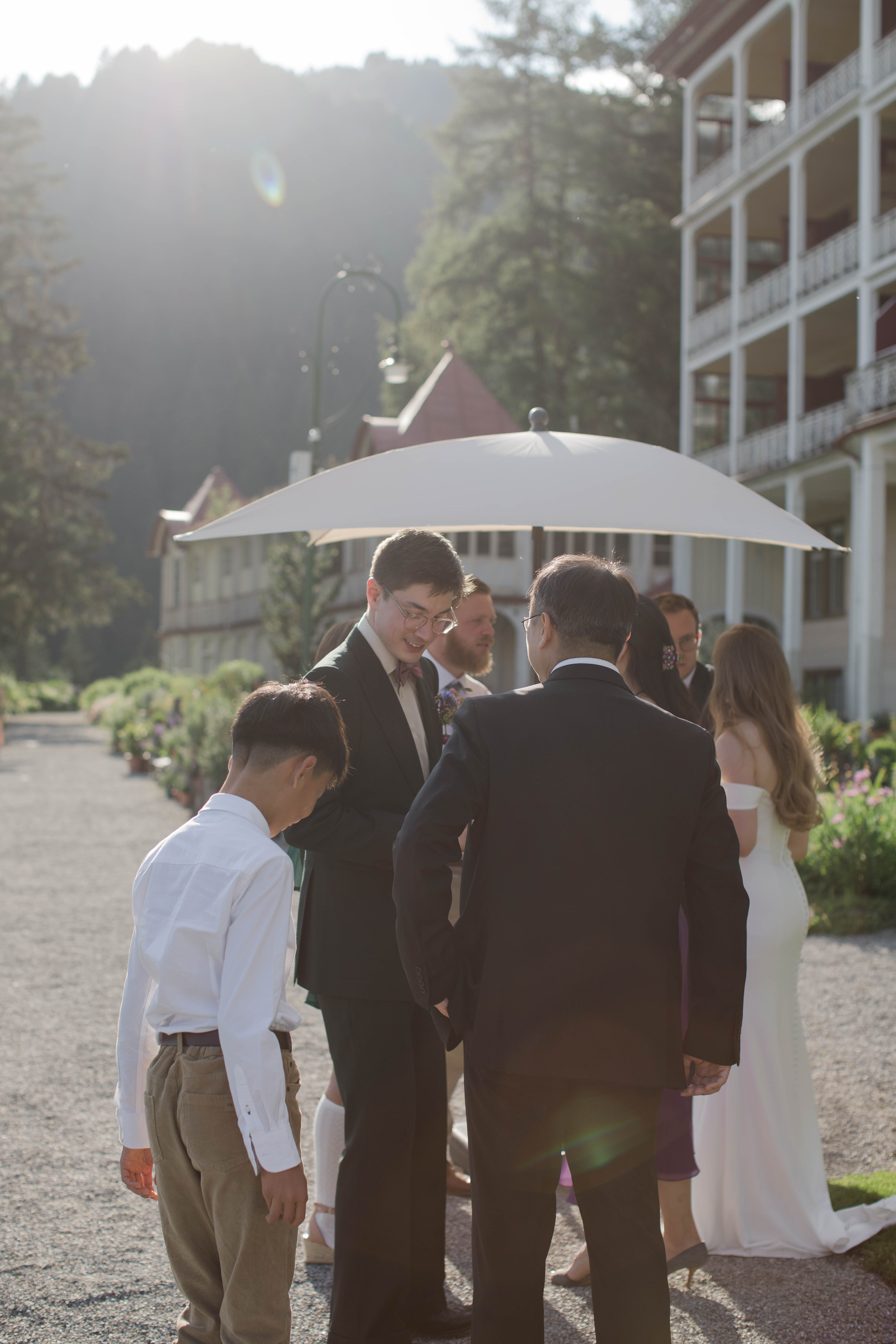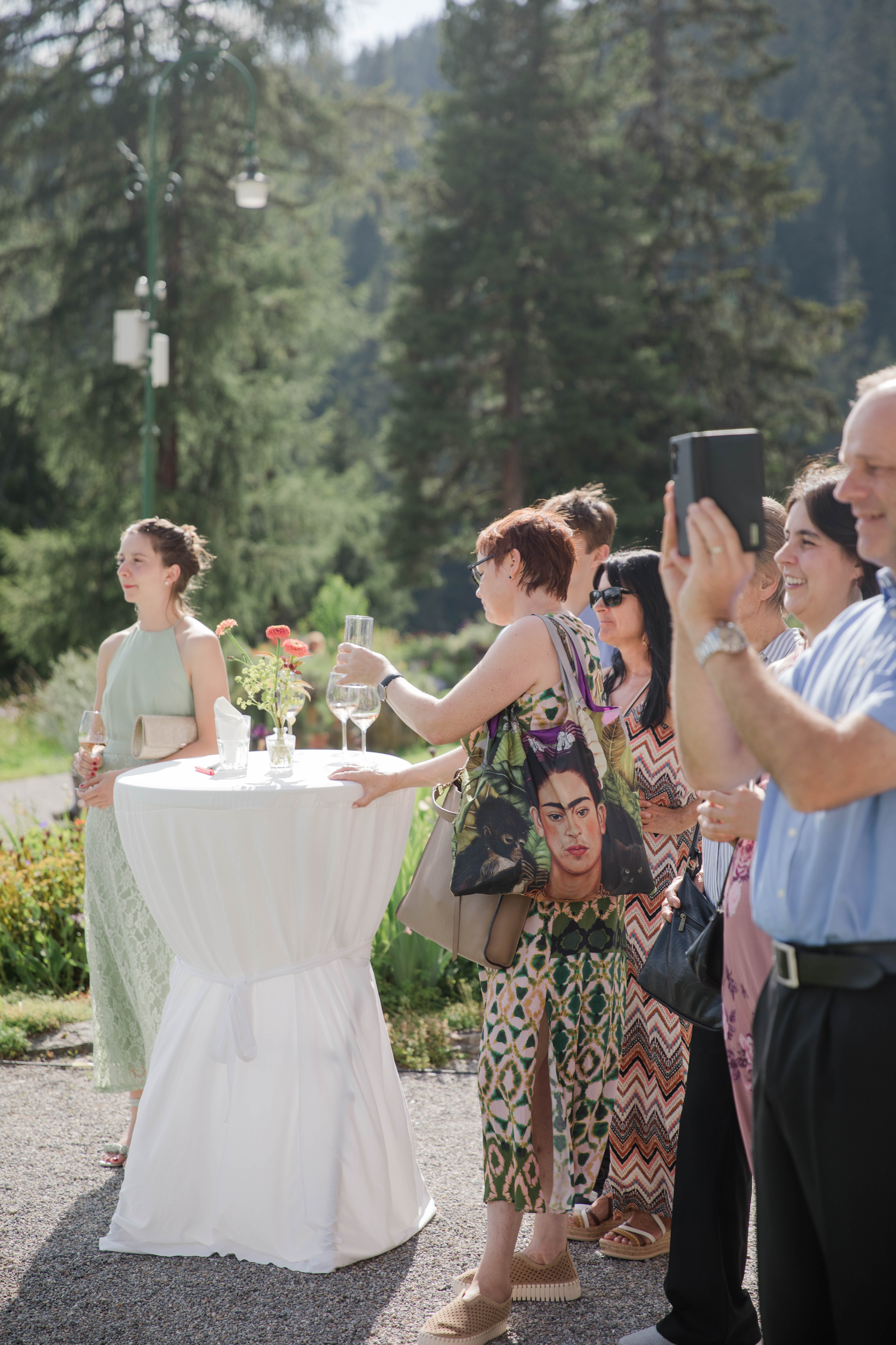 The 18th-century Schatzalp hotel, perched high in the Davos mountains, felt like stepping into a Wes Anderson film. With its symmetrical architecture and vintage charm, it was the perfect setting for this unique wedding. The bride, a true Wes Anderson enthusiast, had expressed her admiration for his style from the very beginning, and I, a fellow fan, was excited to see her vision come to life.