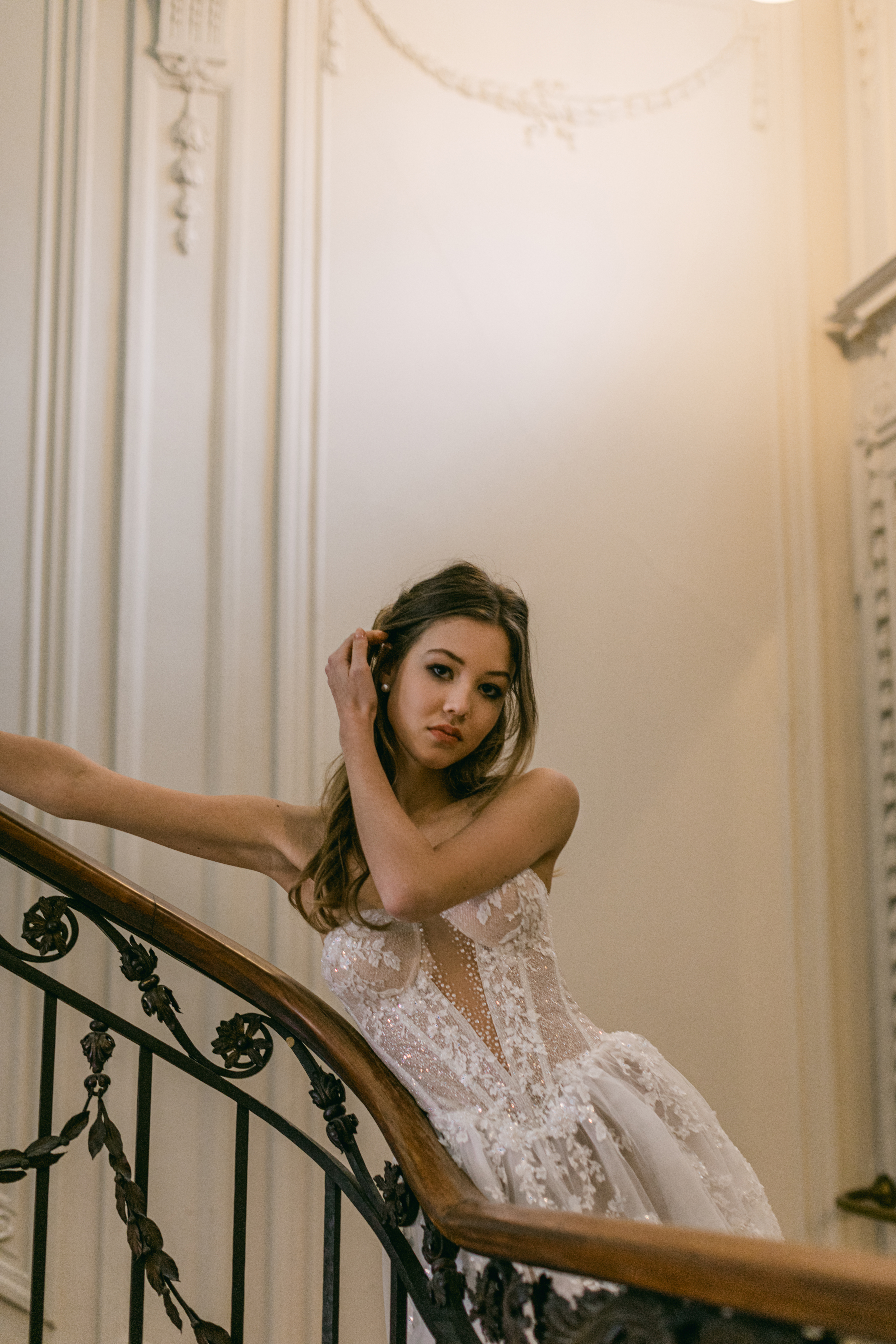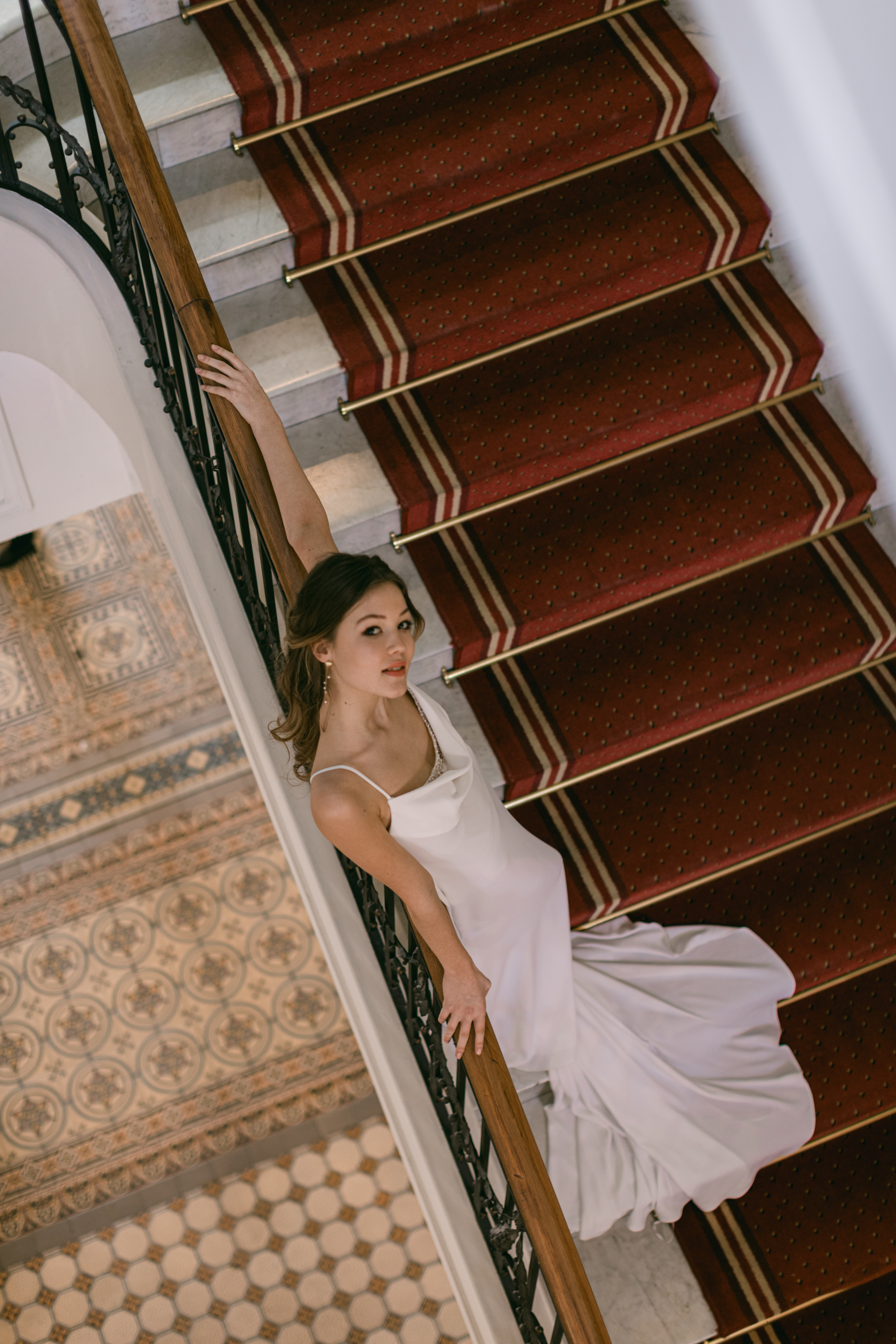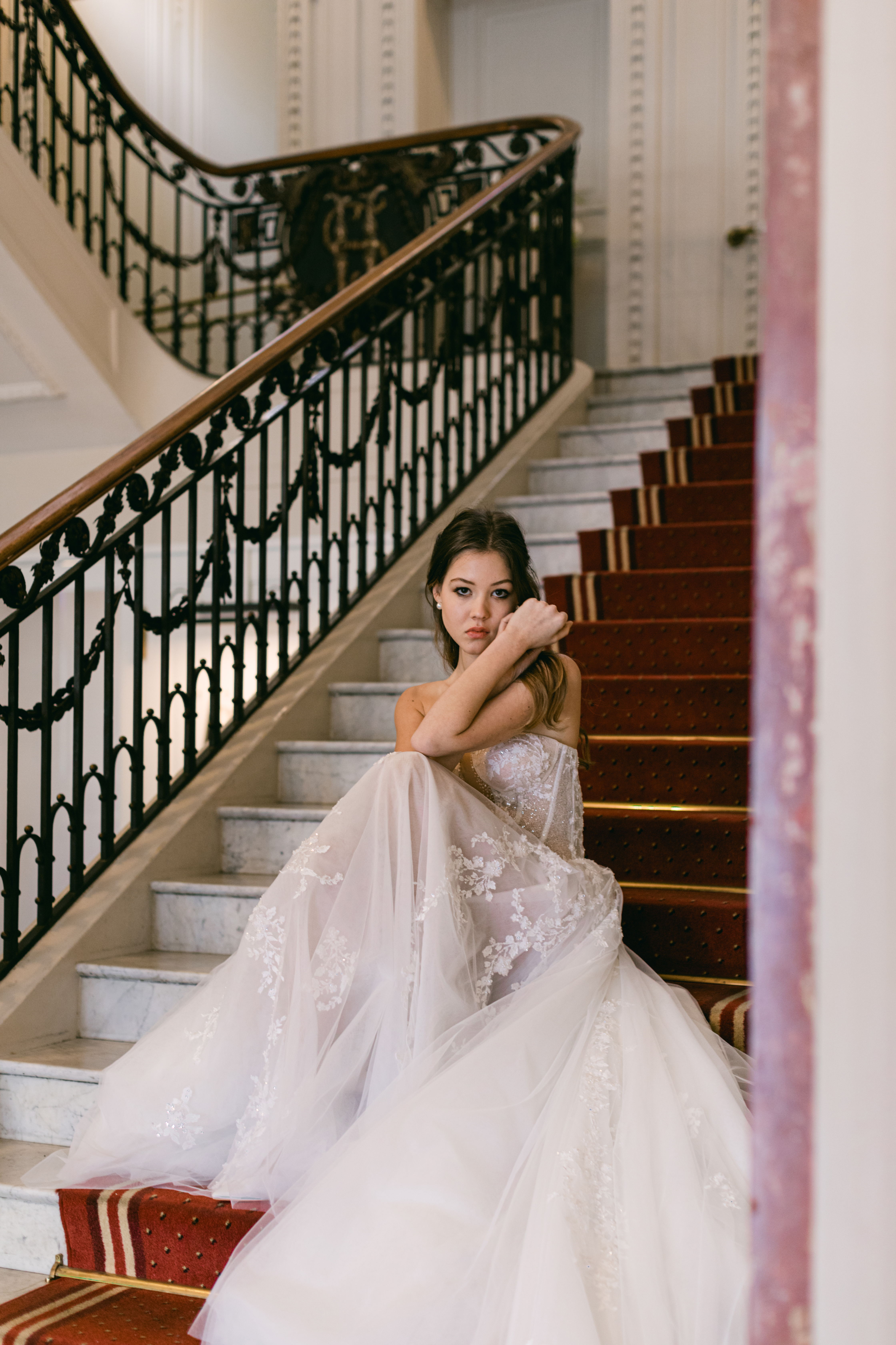 The hotel’s grand staircase was the perfect backdrop for our shoot.