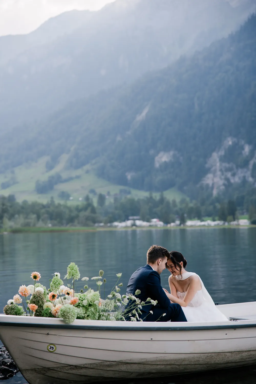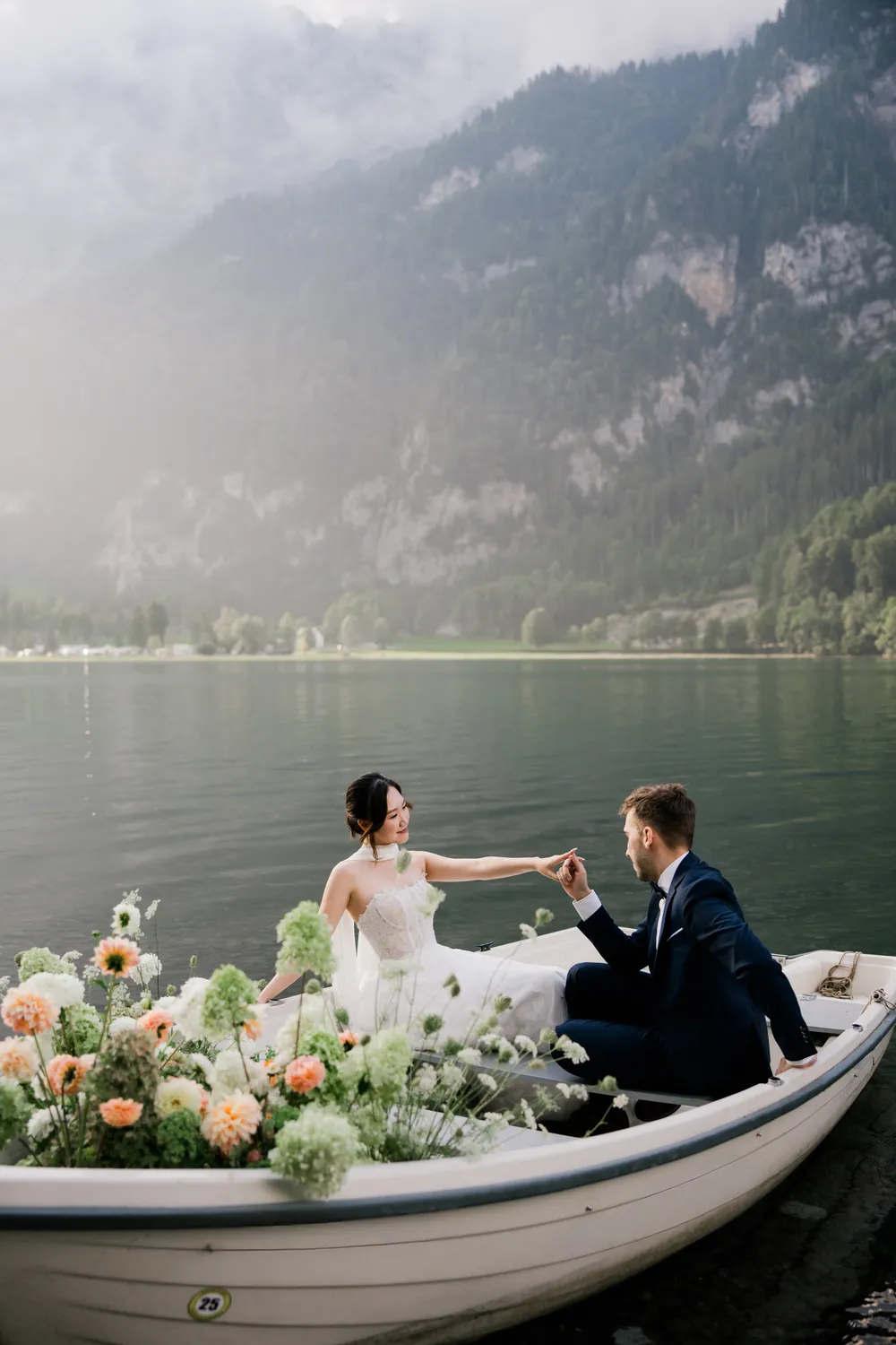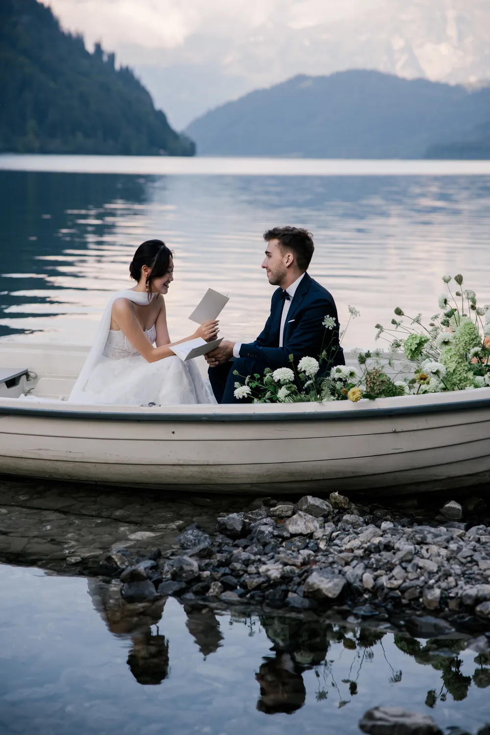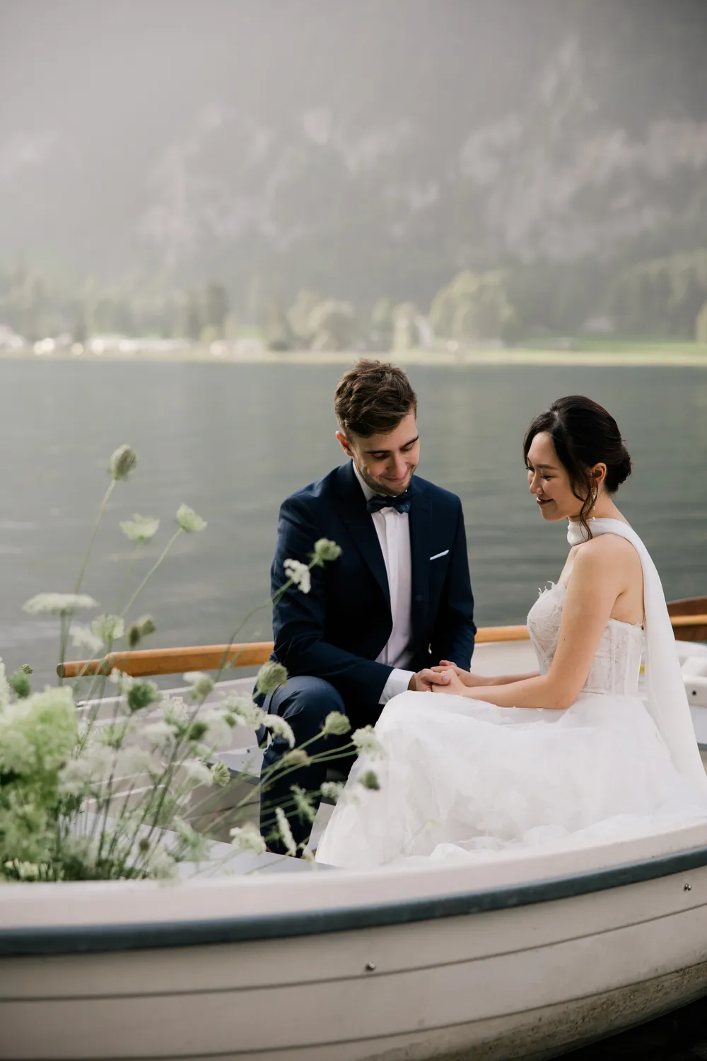 The most captivating part of this day was the “contrast”: the bride, raised among the skyscrapers of Hong Kong, and the groom, who grew up running through the endless Swiss pastures. Two completely different life trajectories miraculously converged as the small boat drifted toward the center of the lake (Image 6).