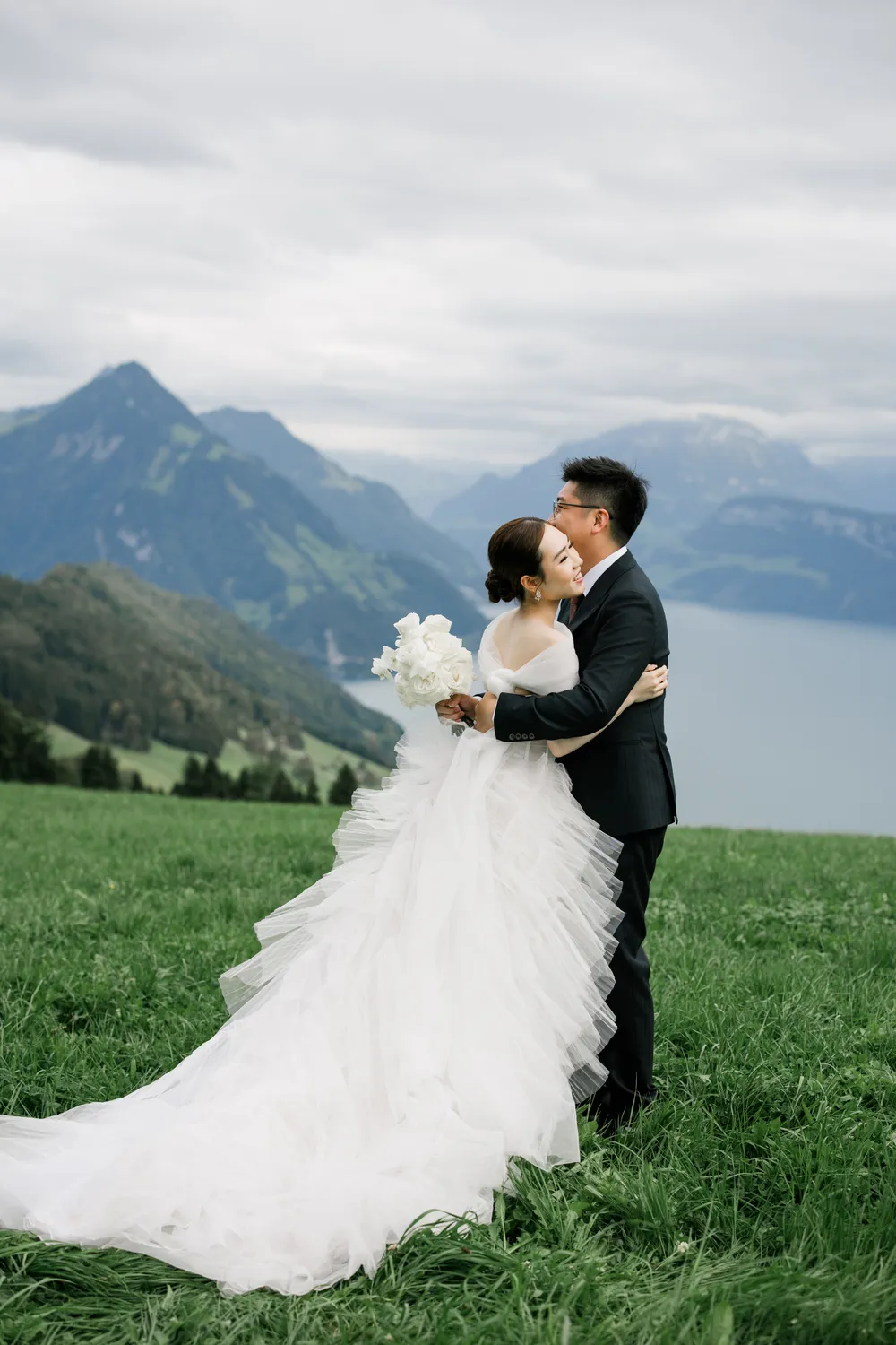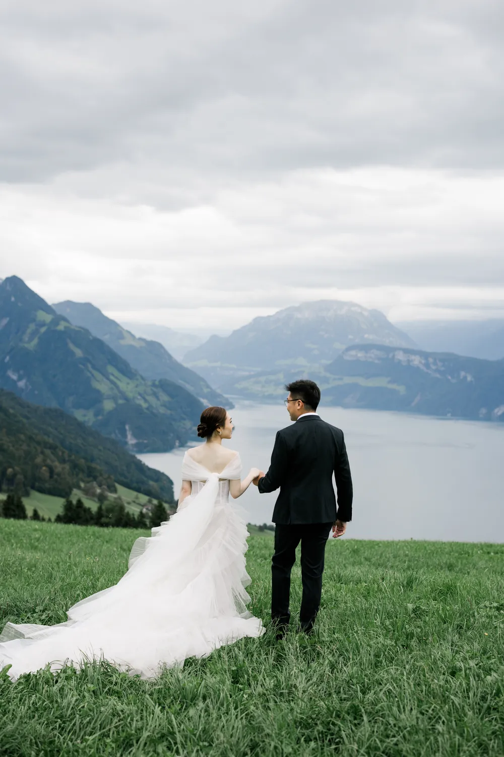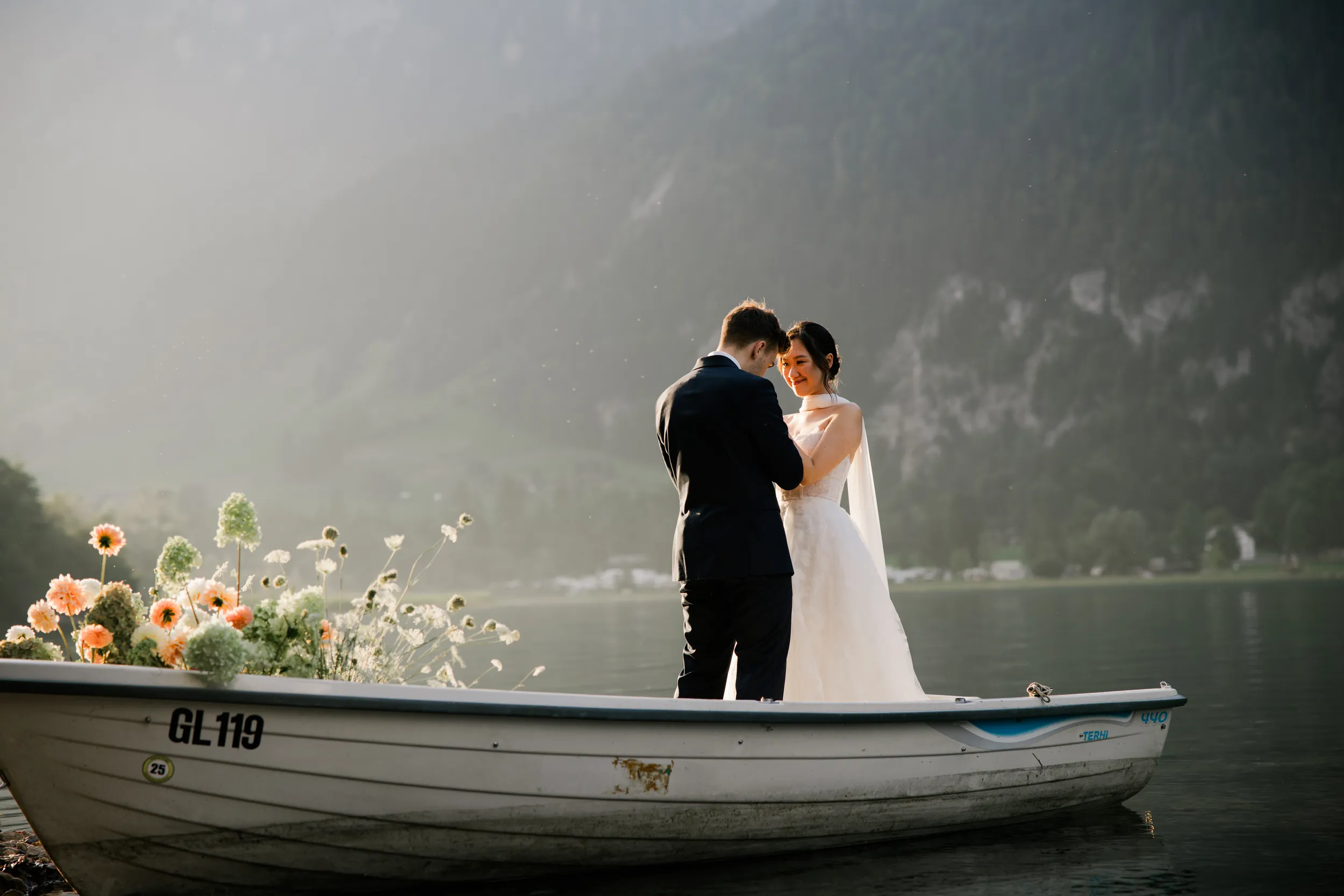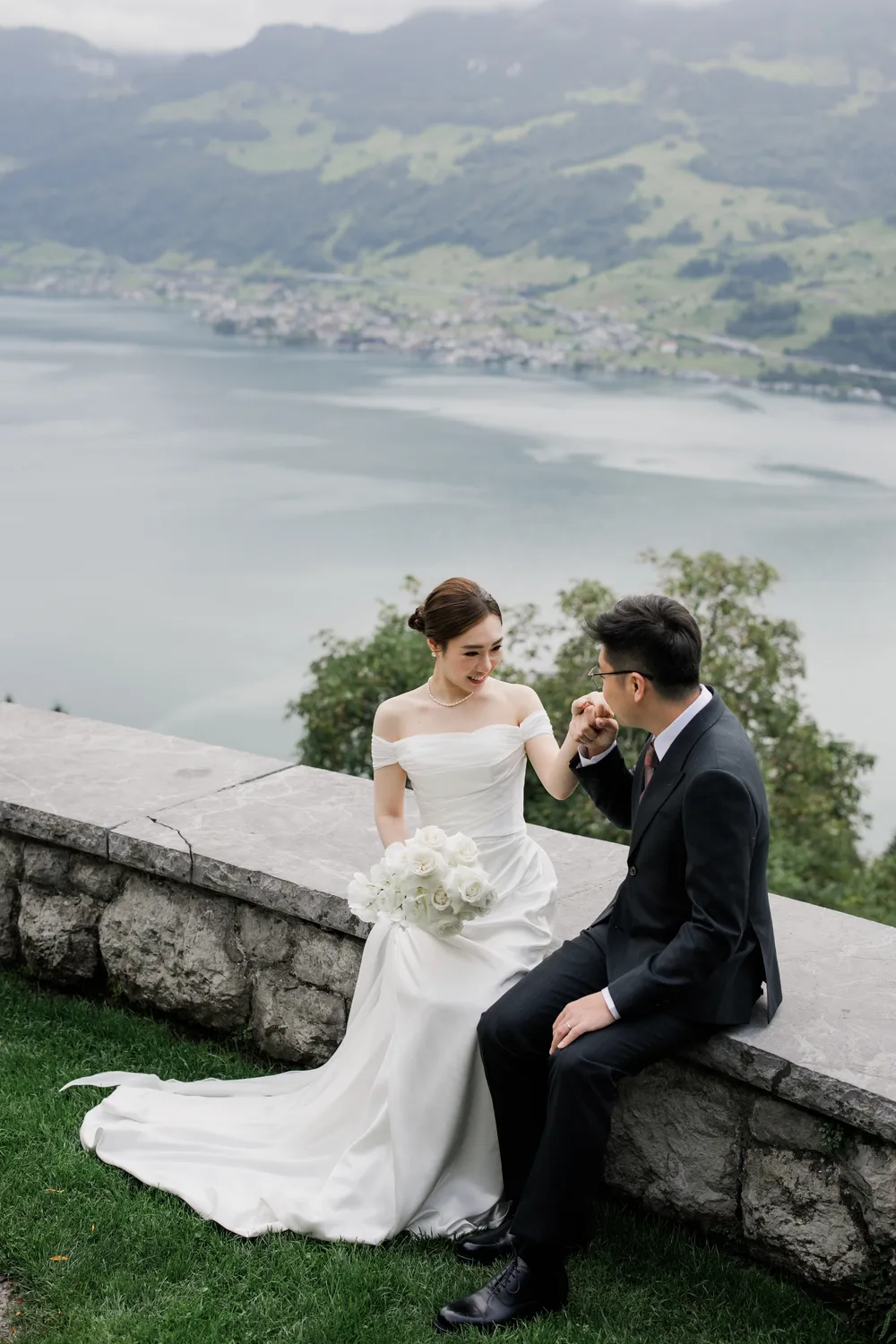 The most captivating part of this day was the “contrast”: the bride, raised among the skyscrapers of Hong Kong, and the groom, who grew up running through the endless Swiss pastures. Two completely different life trajectories miraculously converged as the small boat drifted toward the center of the lake (Image 6).