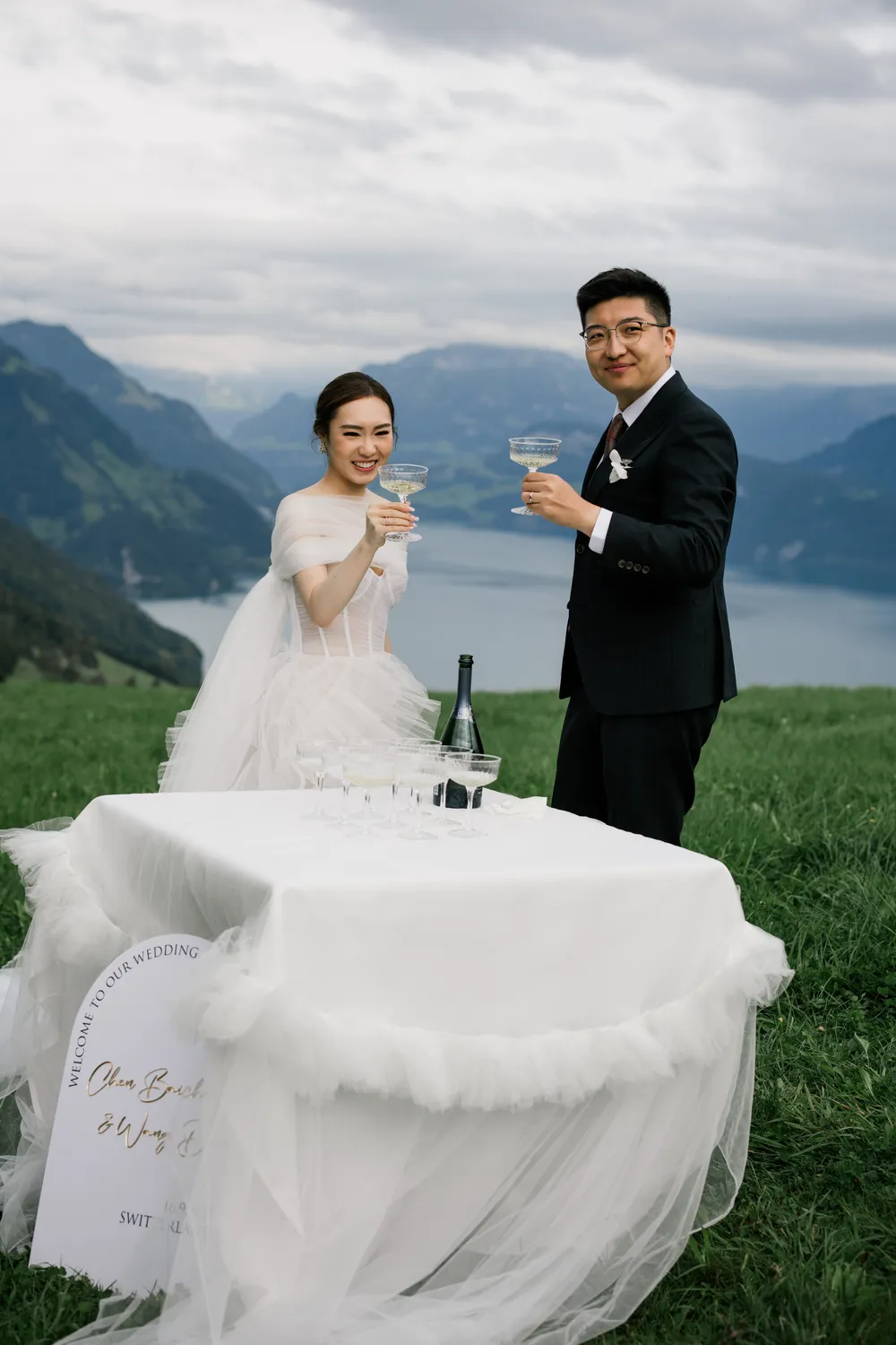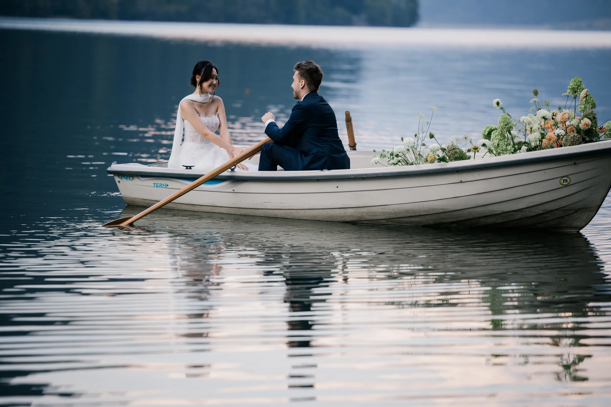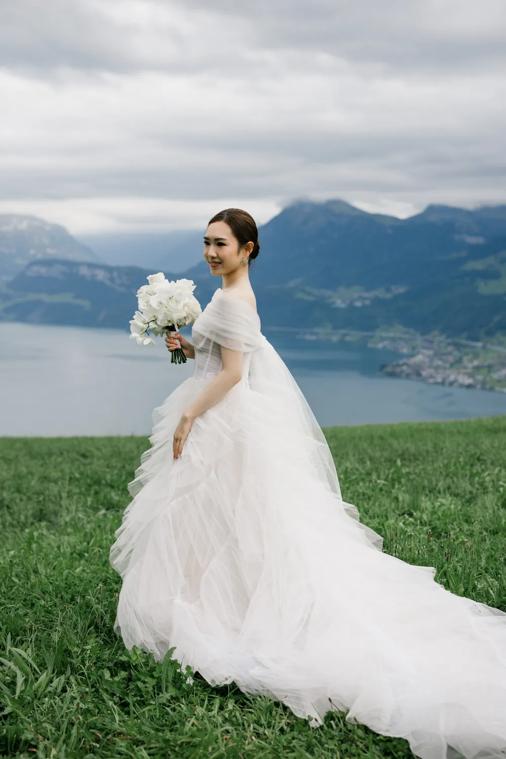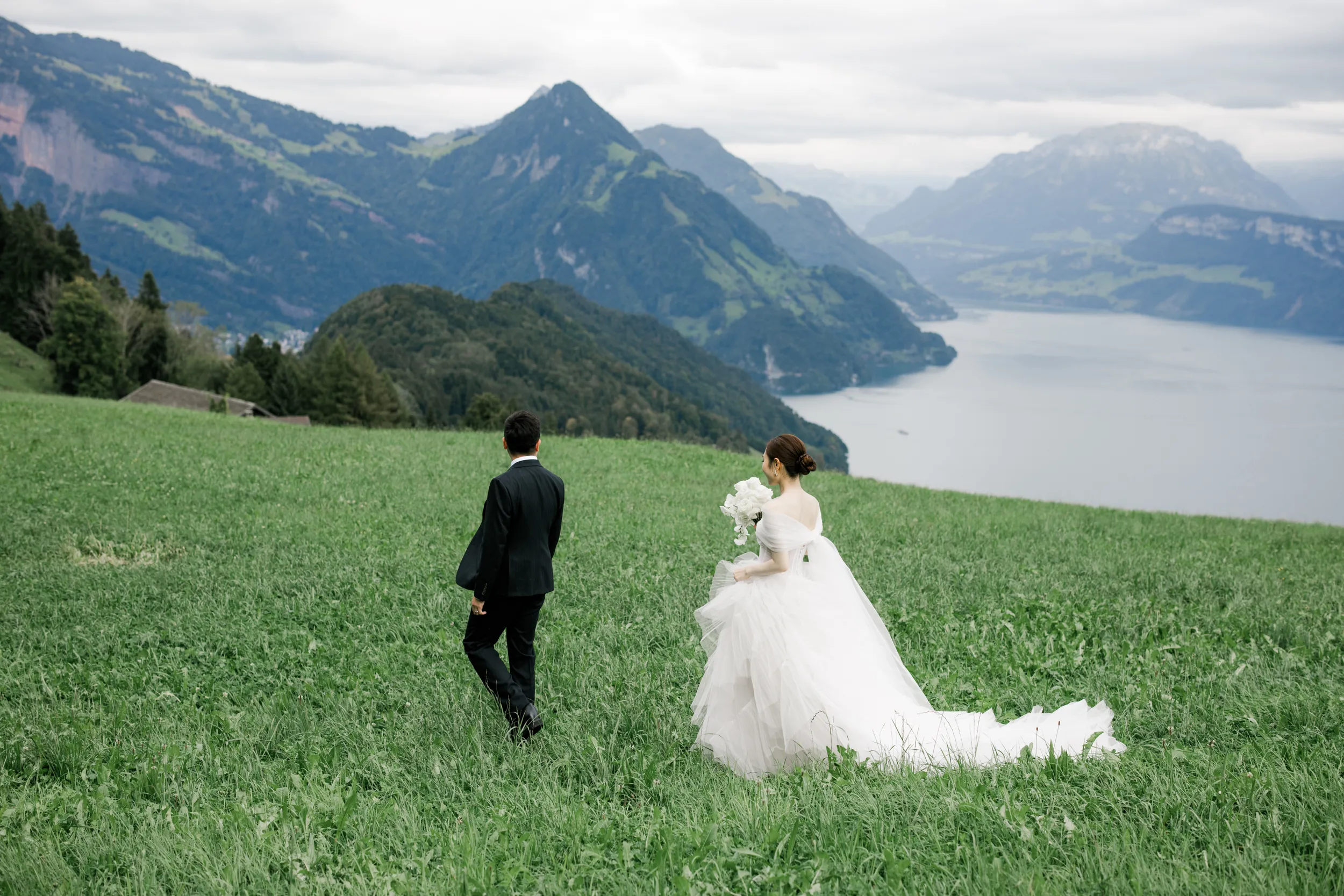 The most captivating part of this day was the “contrast”: the bride, raised among the skyscrapers of Hong Kong, and the groom, who grew up running through the endless Swiss pastures. Two completely different life trajectories miraculously converged as the small boat drifted toward the center of the lake (Image 6).