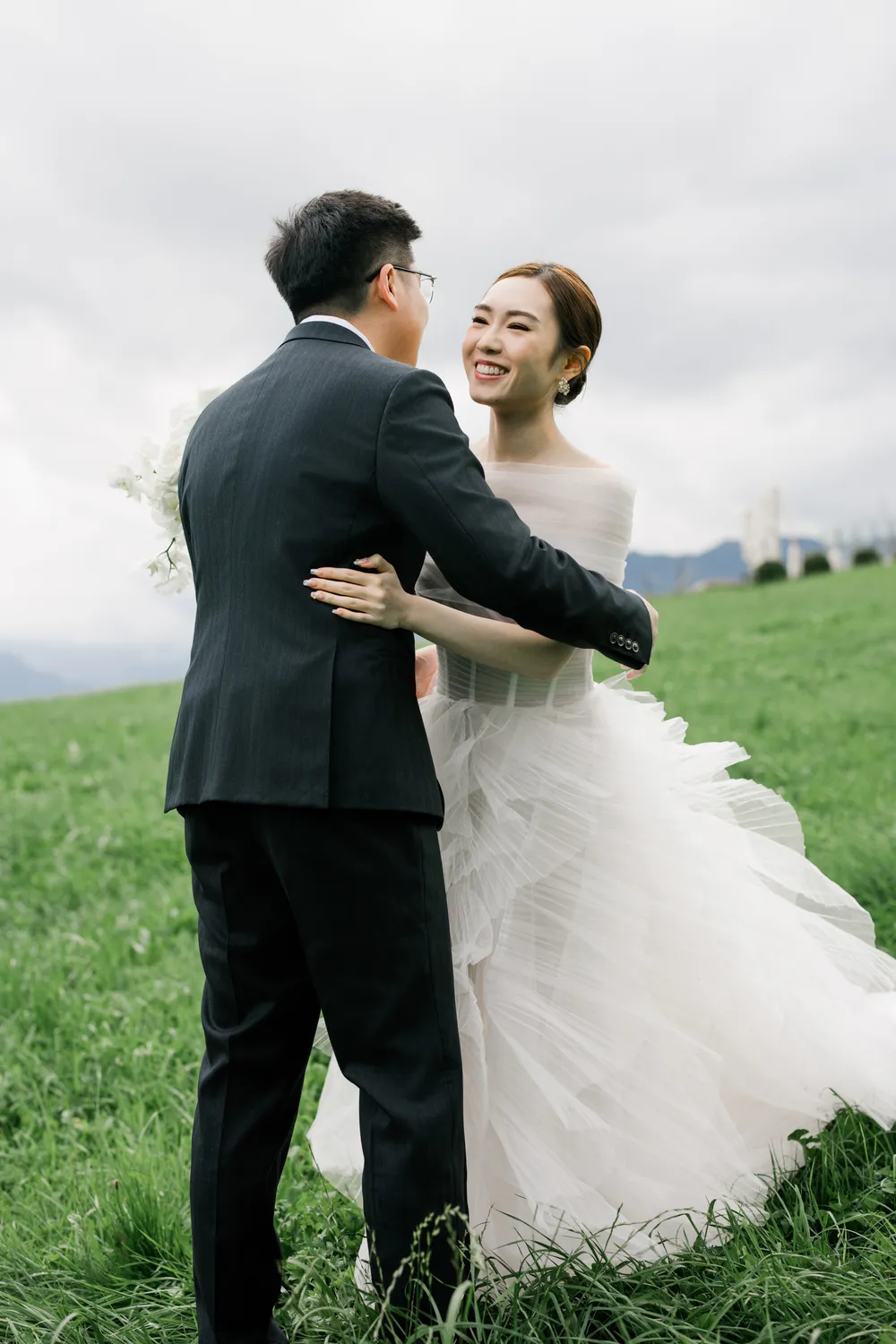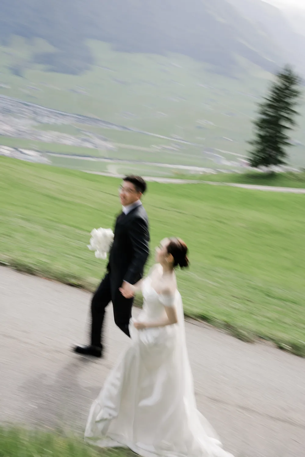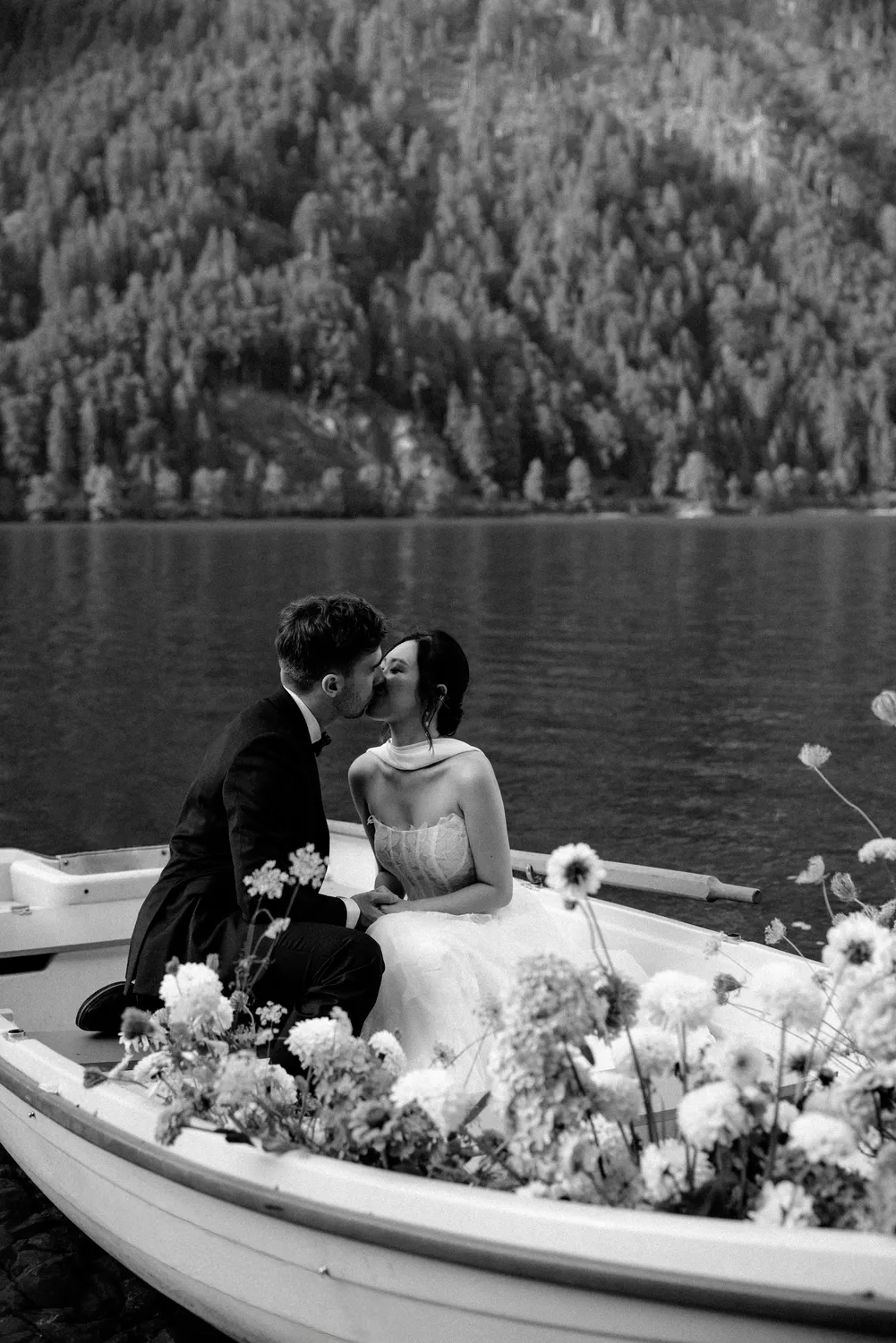 On the boat, there was no grand stage—only the breeze and the breath of the distant mountains. When the groom gently took the bride’s hand (Image 9), words became unnecessary. The floral arrangements on the bow presented a “Wild Alpine” aesthetic: unforced, unrestrained, and in perfect harmony with the untamed landscape. This is exactly what we strive for—not just taking photos, but capturing this “still” vitality.