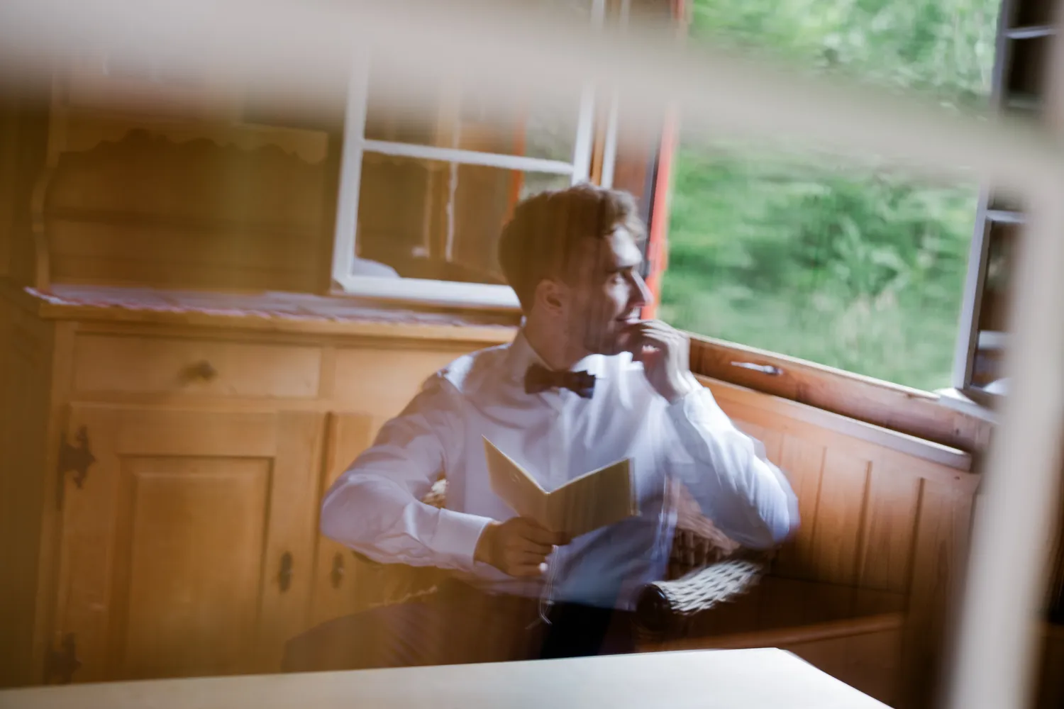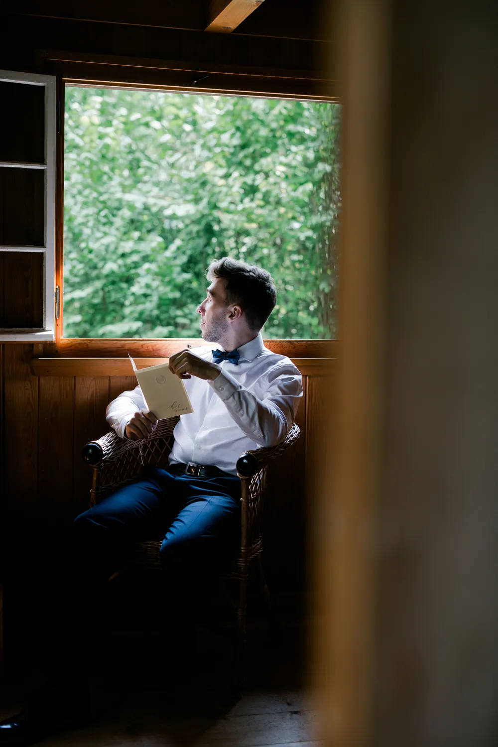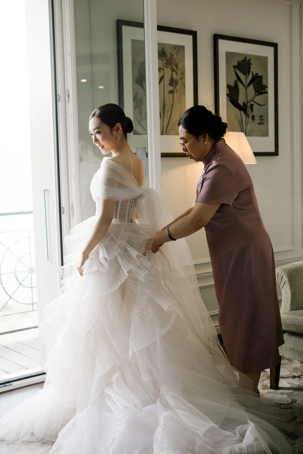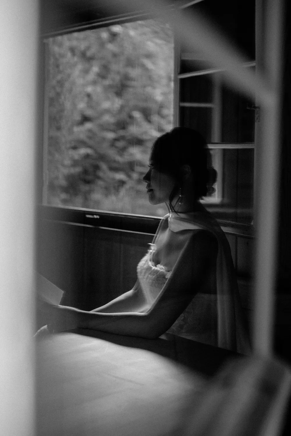 The bride brought with her the chic, fast-paced energy of Hong Kong, yet as she sat by the window, everything seemed to slow down. The sunlight sliced through the room, casting deep, poetic shadows. Watching her read her vows (Image 7) felt like witnessing a moment of profound peace after a long journey. From the silhouette of her putting on earrings (Image 8) to the intricate lace of her gown, it wasn’t just a preparation—it was a soulful immersion into the day.